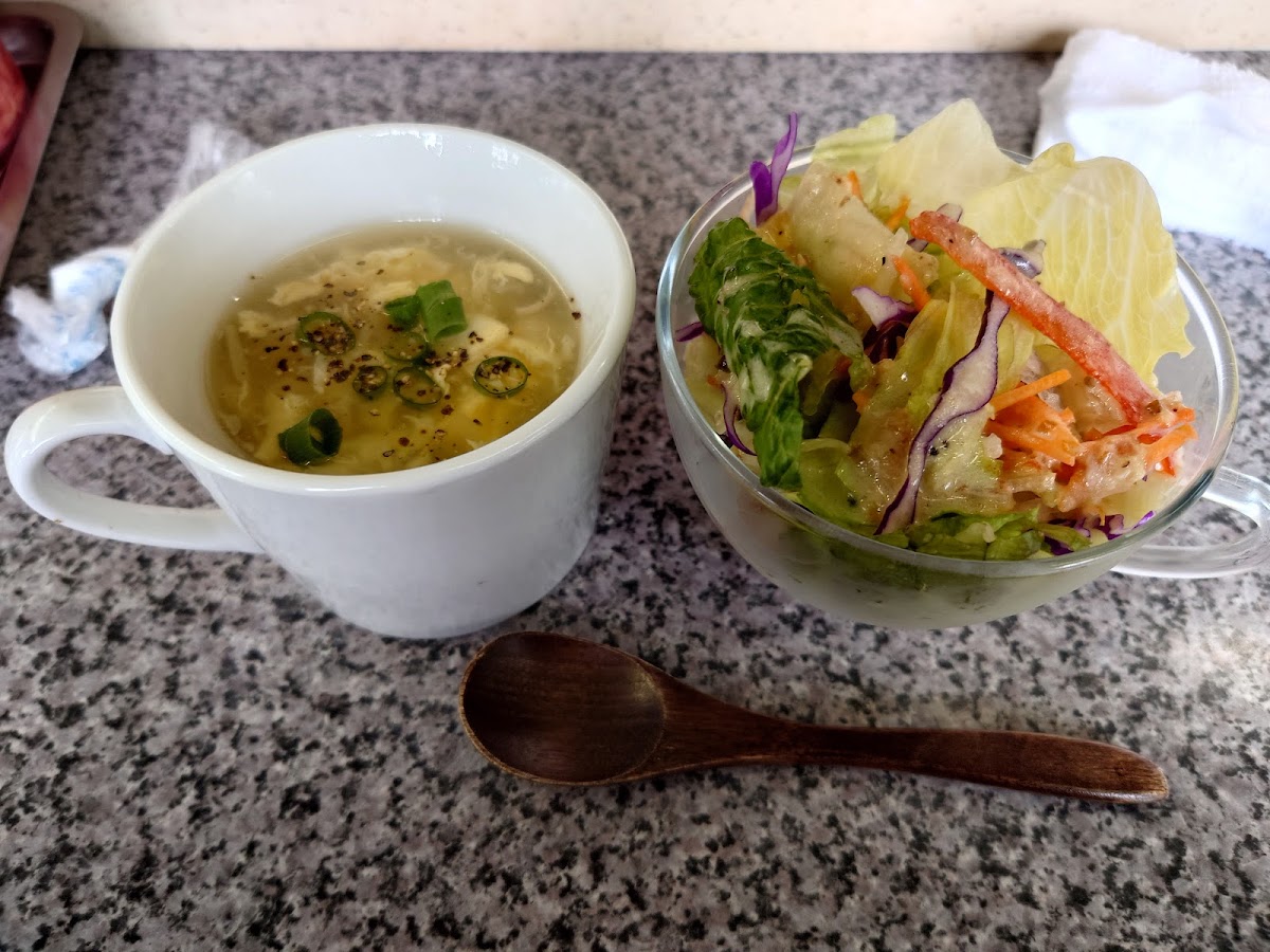 Alongside the noodles, 一口餃子 plays a supporting but memorable role. These bite-sized dumplings are easy to share, lightly crisp on the outside, and juicy inside. They pair naturally with the yakisoba, adding contrast without stealing the spotlight. For those looking for balance, the B Set Salad brings freshness to the table, offering a clean, simple break between richer bites. Meanwhile, the 想夫恋焼セットのスープ rounds out the meal with warmth and comfort, tying everything together in a way that feels thoughtful rather than excessive.